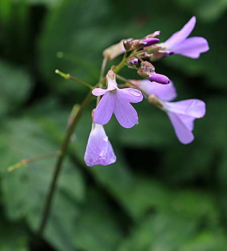 La plante couvre-sol pour sous-bois clair et terrain frais. C’est une vivace assez peu connue. Et pourtant elle ne manque pas d’atouts : son feuillage caduc (20 à 30 cm) est assez joli, elle s’étale assez vite car elle drageonne sans être trop envahissante. Sa floraison est exceptionnellement longue soi-disant d’avril à mai mais dans mon jardin elle est déjà en fleurs en février ! Les fleurs couleur mauve forment des grappes bien visibles au dessus du feuillage.|