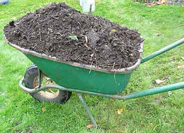 Le tas de compost déborde. C’est le moment de commencer à le vider (je vide le trou N° 2. Revoir les explications du 25 février). Je le répands sur la terre là où je viens de nettoyer. J’ai déjà dû mettre 5 ou 6 brouettes. C’est du compost commencé en février - mars. Cà m’a toujours fait sourire d’entendre des jardiniers dire qu’il leur faut deux ans pour utiliser leur compost.