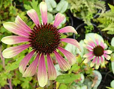 Pendant ces 3 jours, passage par la pépinière Campanule à Coesmes près de Rennes (j’y étais déjà passé en juin - cette fois c’est pour récupérer un CD de photos de campanules pour illustrer la conférence d’octobre sur cette plante que j’aime beaucoup... et pour le site. Rendez-vous fin octobre). Serez-vous étonnés si je vous dis que nous avons craqué pour 3 nouvelles campanules (elles sont donc plantées aujourd’hui) et pour un Echinacea purpurea ’Green Envy’. La dominante de cette variété est le vert contrairement à ce que laisse penser la photo ci-contre. Mélangé à du jaune et du rose, c’est vraiment original.