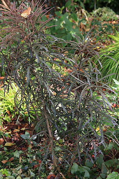 Caractéristiques : Superbe arbuste persistant, original à tout point de vue. Les feuilles longues et rigides sont très étroites. Le feuillage est bronze foncé avec une nervure plus claire. Ses tiges verticales lui donnent un port étroit. Sa croissance est plutôt lente. Dimensions maximum 2 m x 1, 20 m.